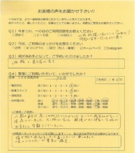 ご利用いただいたT.F様のアンケートをご紹介します。