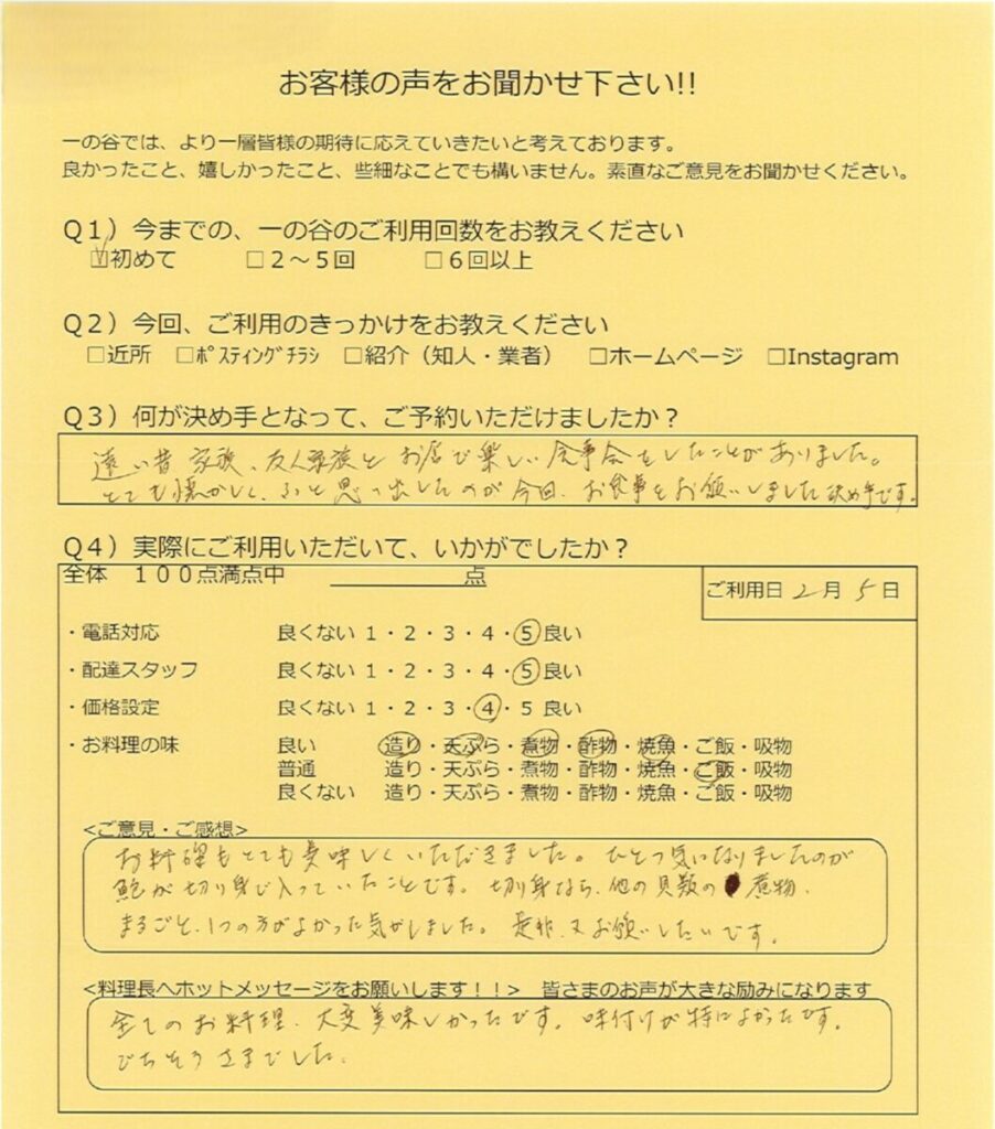 全てのお料理、大変美味しかったです。味付けが特によかったです。