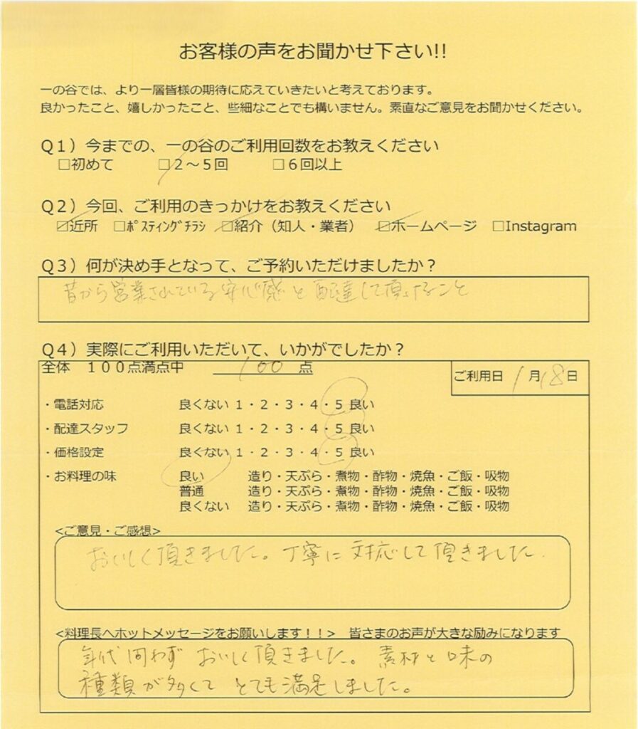 年代問わずおいしく頂きました。素材と味の種類が多くてとても満足しました。