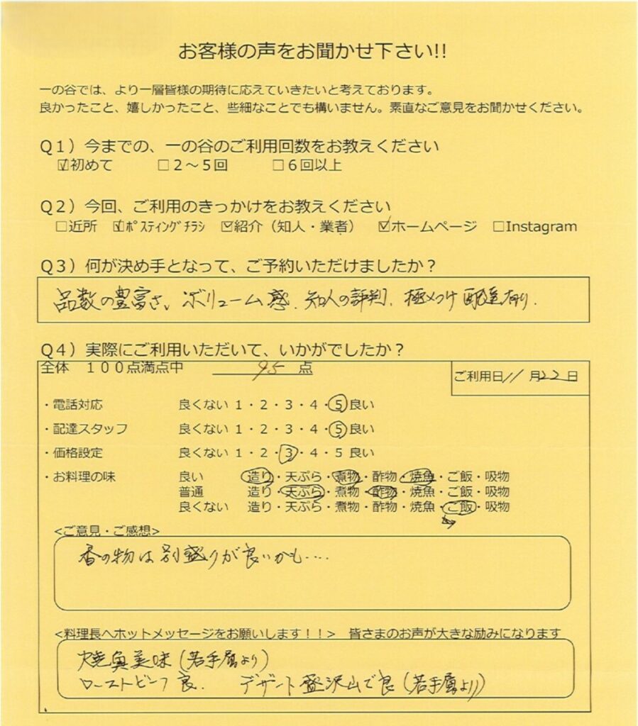 品数の豊富さ、ボリューム感、知人の評判、極めつけ配達有り。