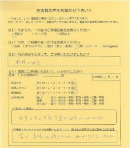 ご利用いただいたN.O様のアンケートをご紹介します。