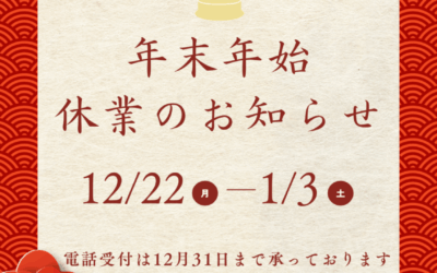 冬季休業のお知らせ(2025年12月22日~2026年1月3日)